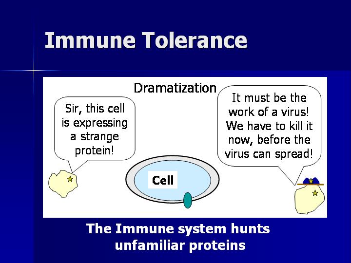 has tolerance for proteins it has seen in your body, and attacks any cell